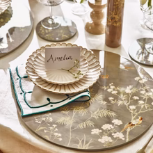 - #B04: Chinoiserie Sophistication – A set of four Addison Ross designer placemats in gray chinoiserie. Value: $205